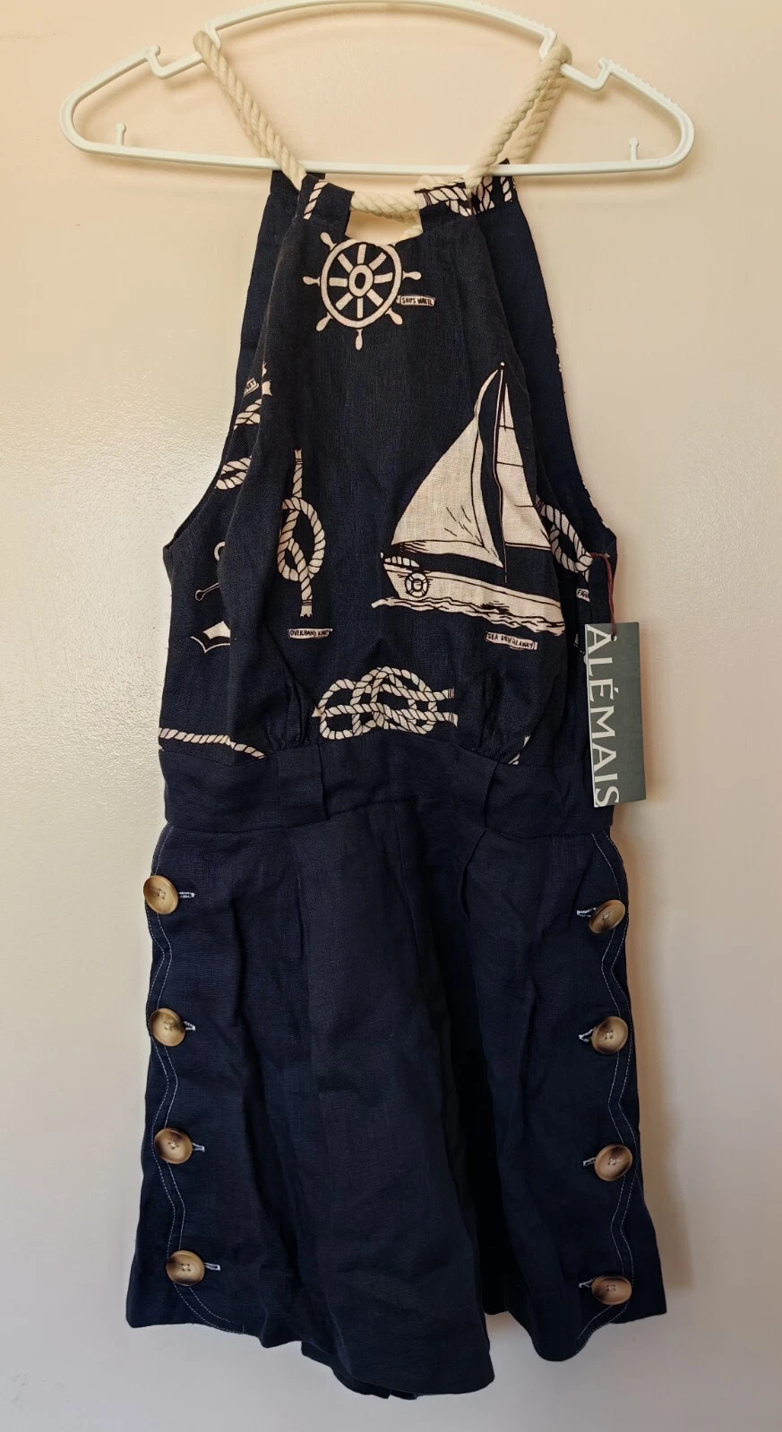 Nwt Alemais size 4 sea queen scalloped playsuit Linen. Please note this garment is missing the belt. You can use your own belt if needed. It only has decorative purpose, not essential. Size 4 AU sizing Smoke and pet free. Happy to combine potage.