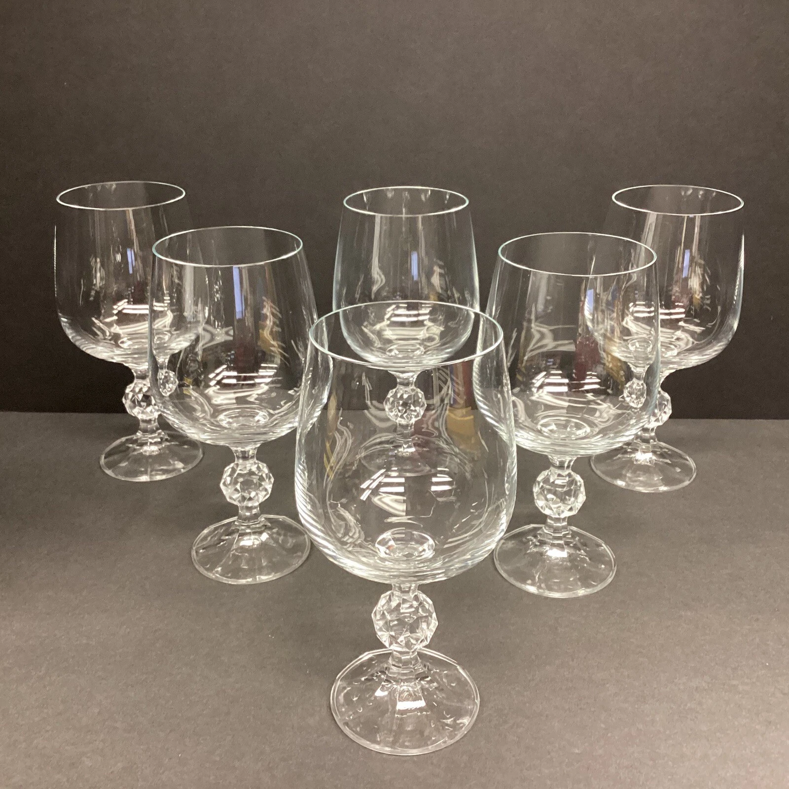 Add a touch of elegance to your collection with these six-piece round shaped water glasses from Claudia by imports. Crafted in 1987 in Poland, these vintage glasses feature clear bowl and ball stems that exude a classic charm. Perfect for any occasion, these original glasses are ideal for sipping your favorite beverage or water. Hand wash only for best care results.