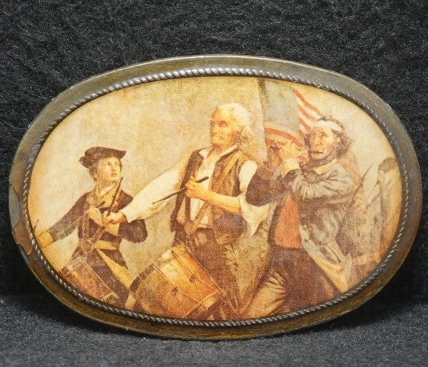XA17167 REALLY NICE VINTAGE 1970s ***PATRIOTIC ARTWORK*** MENS BRASS BELT BUCKLE