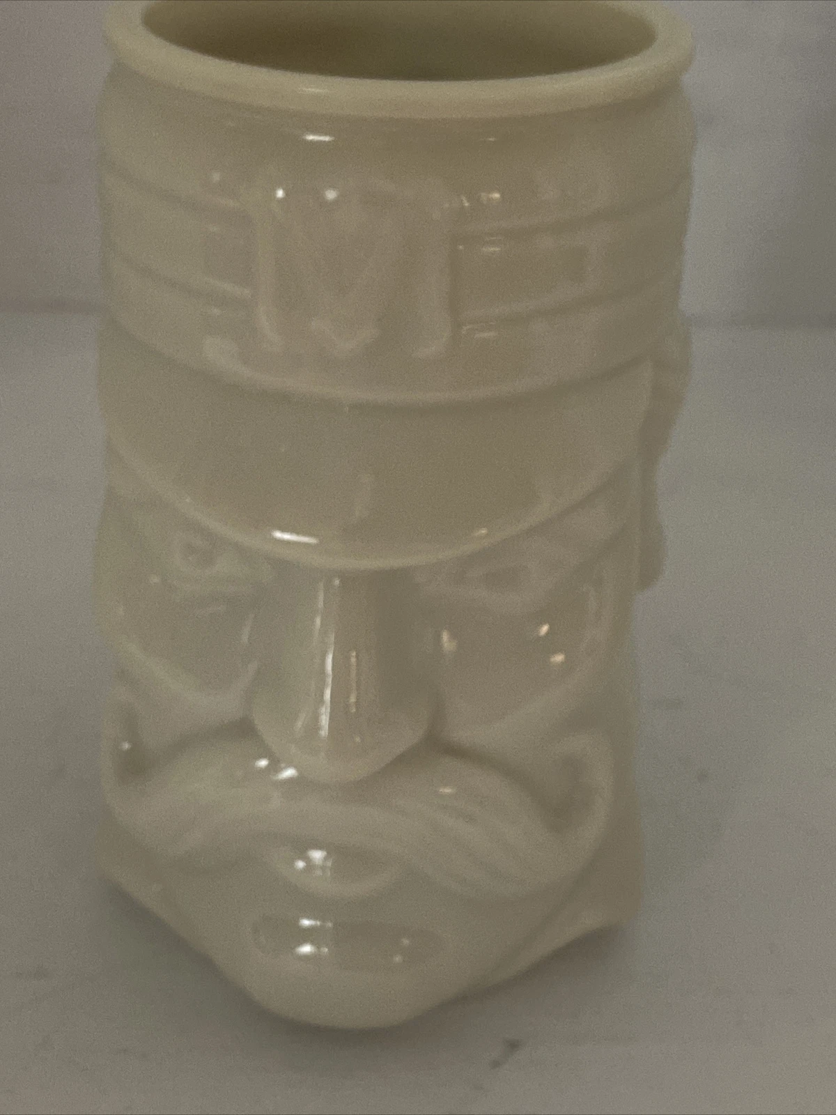 This vintage mug from Avon features Casey At The Bat, a classic character from baseball lore. The mug is made of custard glass and stands at 5.5 inches tall with a width of 3 inches. The white mug is perfect for all occasions and has a service for one. The mug is part of the Avon 1980s collection and is a must-have for any baseball fan or collector. The mug is in great shape and ready to be used or displayed. Get your hands on this unique piece of history today!