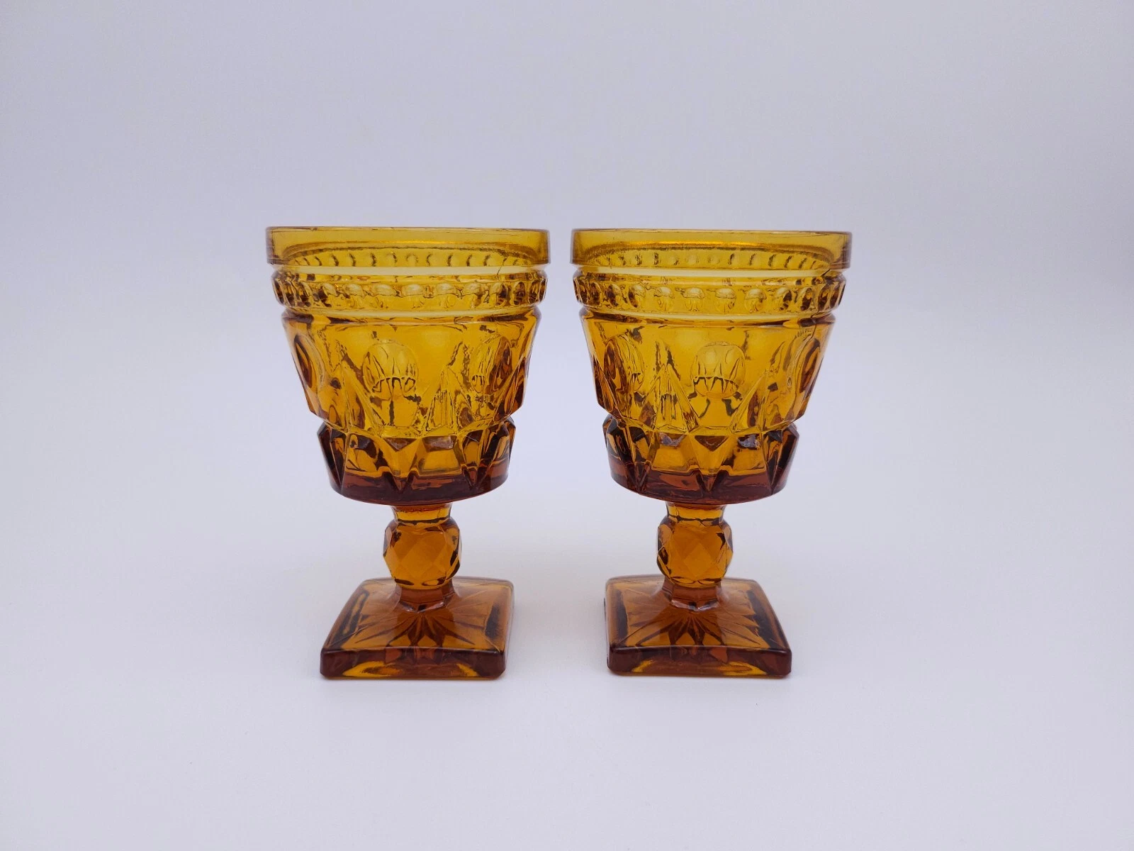 Vintage Set of 2 Indiana Glass Amber Park Lane Wine Glasses Height 4.3" Good condition.